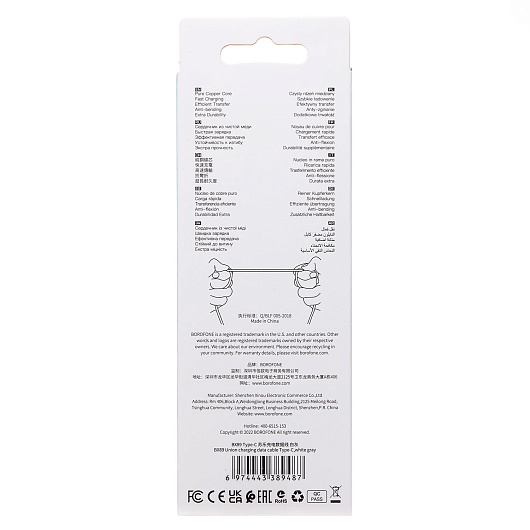 Кабель USB - Type-C Borofone BX89 18W 100см 3A (white/green)