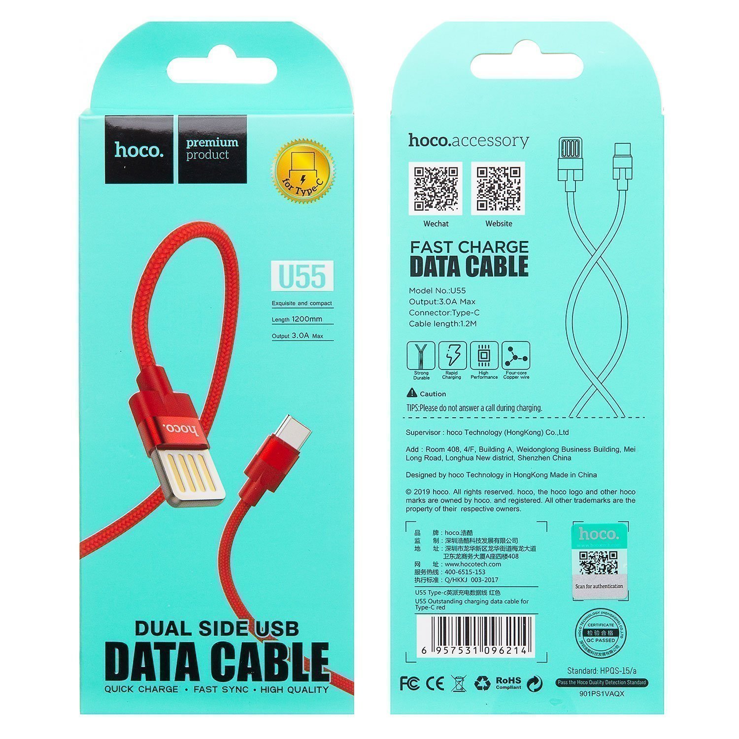 Кабель USB - Type-C Hoco U55 Outstanding 12W 120см 2,4A (red)