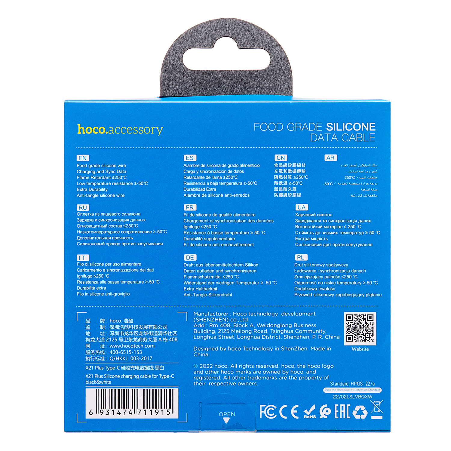 Кабель USB - Type-C Hoco X21 Plus (silicone) 18W 100см 3A (white/black)