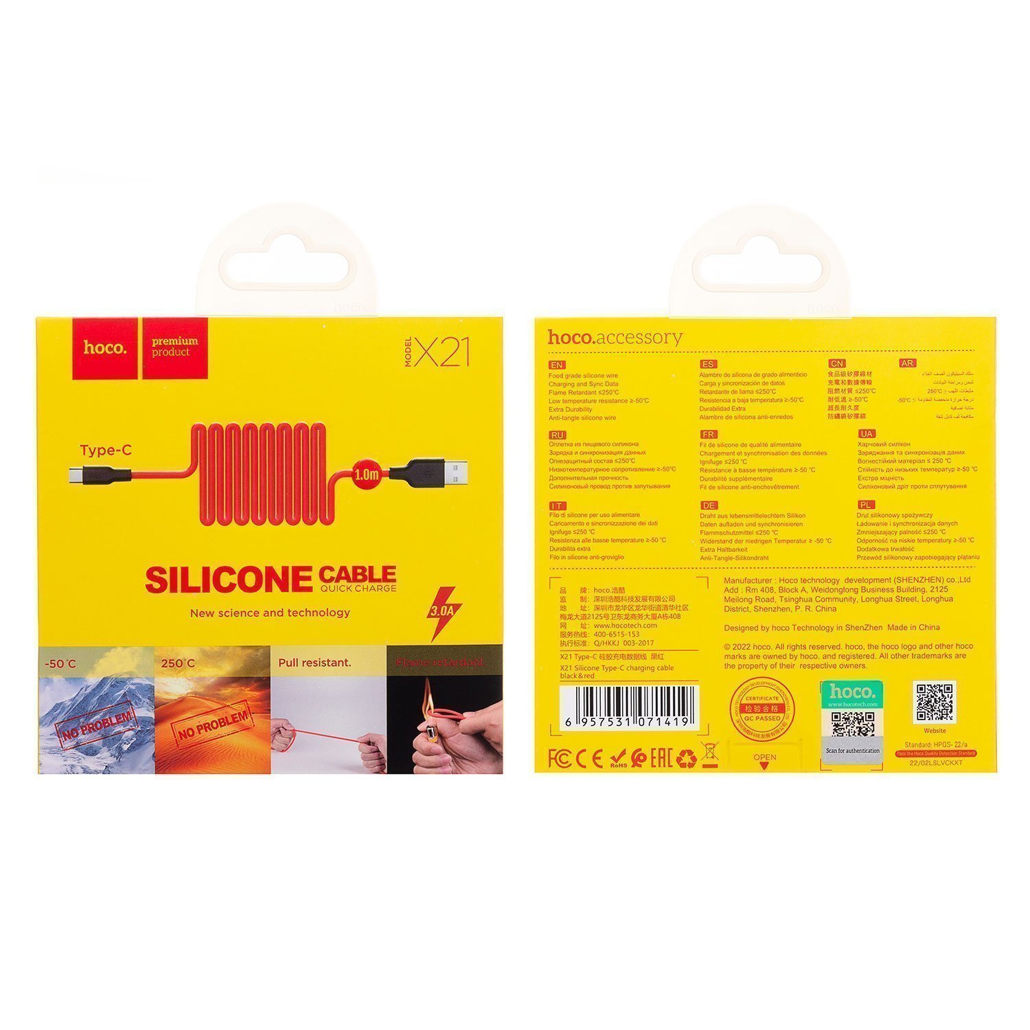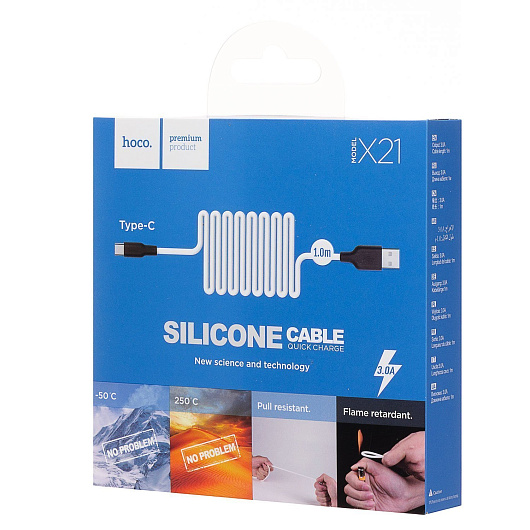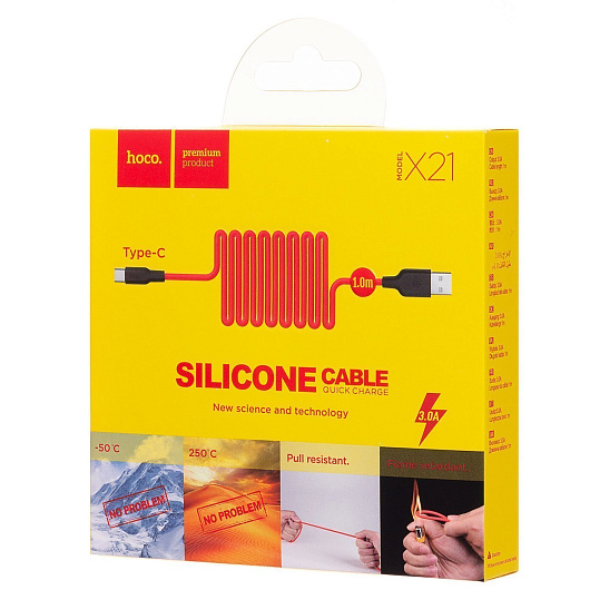 Кабель USB - Type-C Hoco X21 Silicone 18W 100см 3A (black/red)