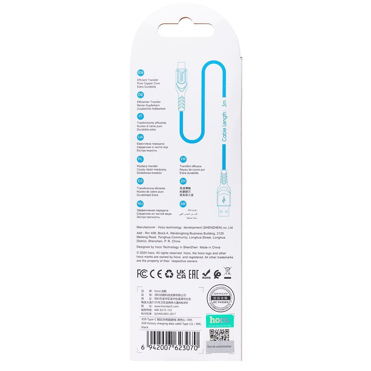 Кабель USB - Type-C Hoco X59 Victory 18W 300см 3A (black)