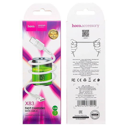 Кабель USB - Type-C Hoco X83 20W 100см 3A (white)