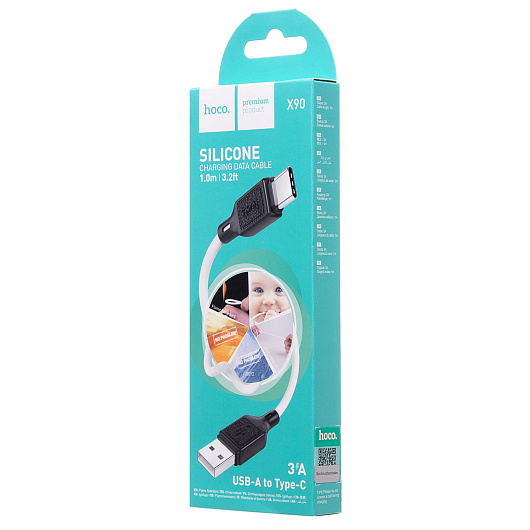 Кабель USB - Type-C Hoco X90 Cool 18W 100см 3A (white)