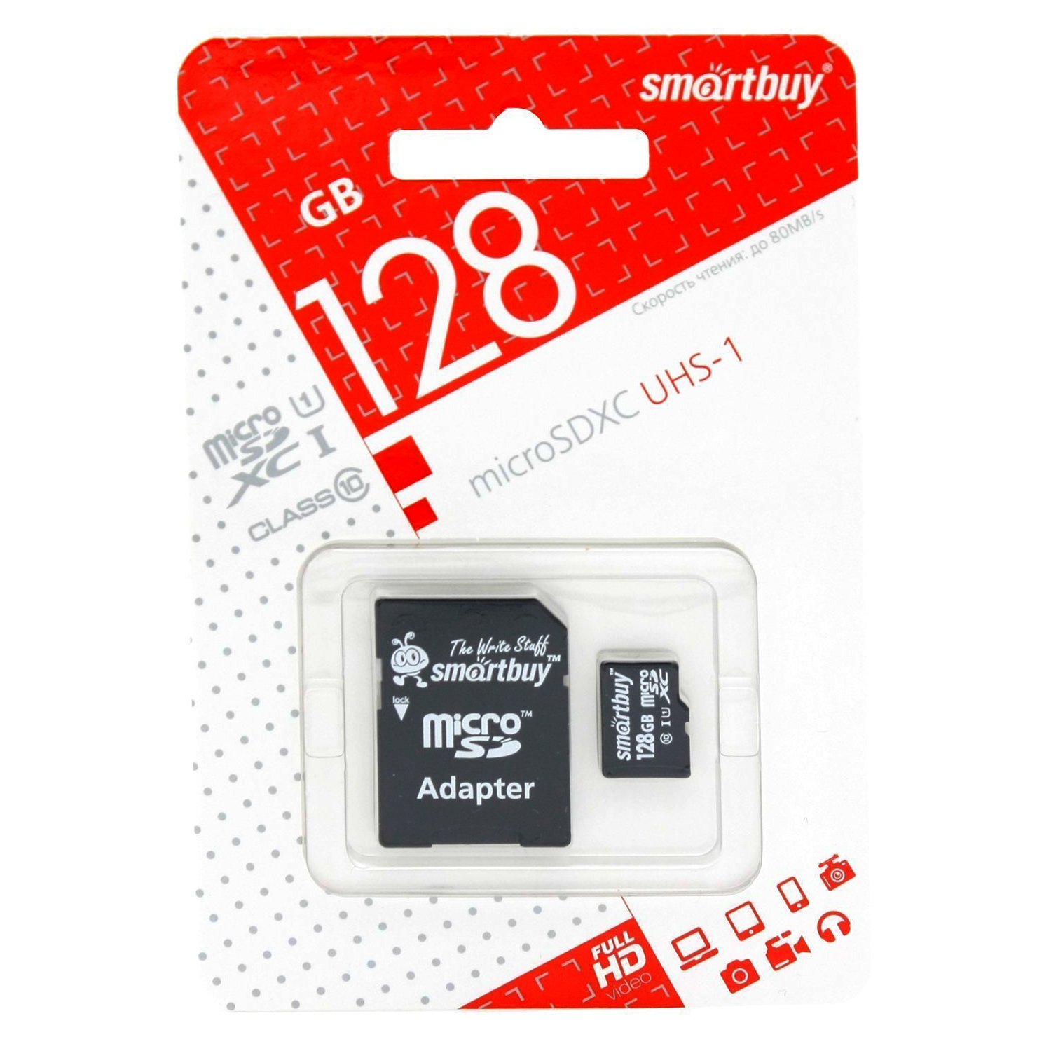 Карта флэш-памяти MicroSD 128 Гб Smart Buy +SD адаптер (class 10)