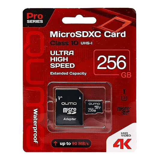 Карта флэш-памяти MicroSD 256 Гб Qumo +SD адаптер Pro seria UHS-1 U3