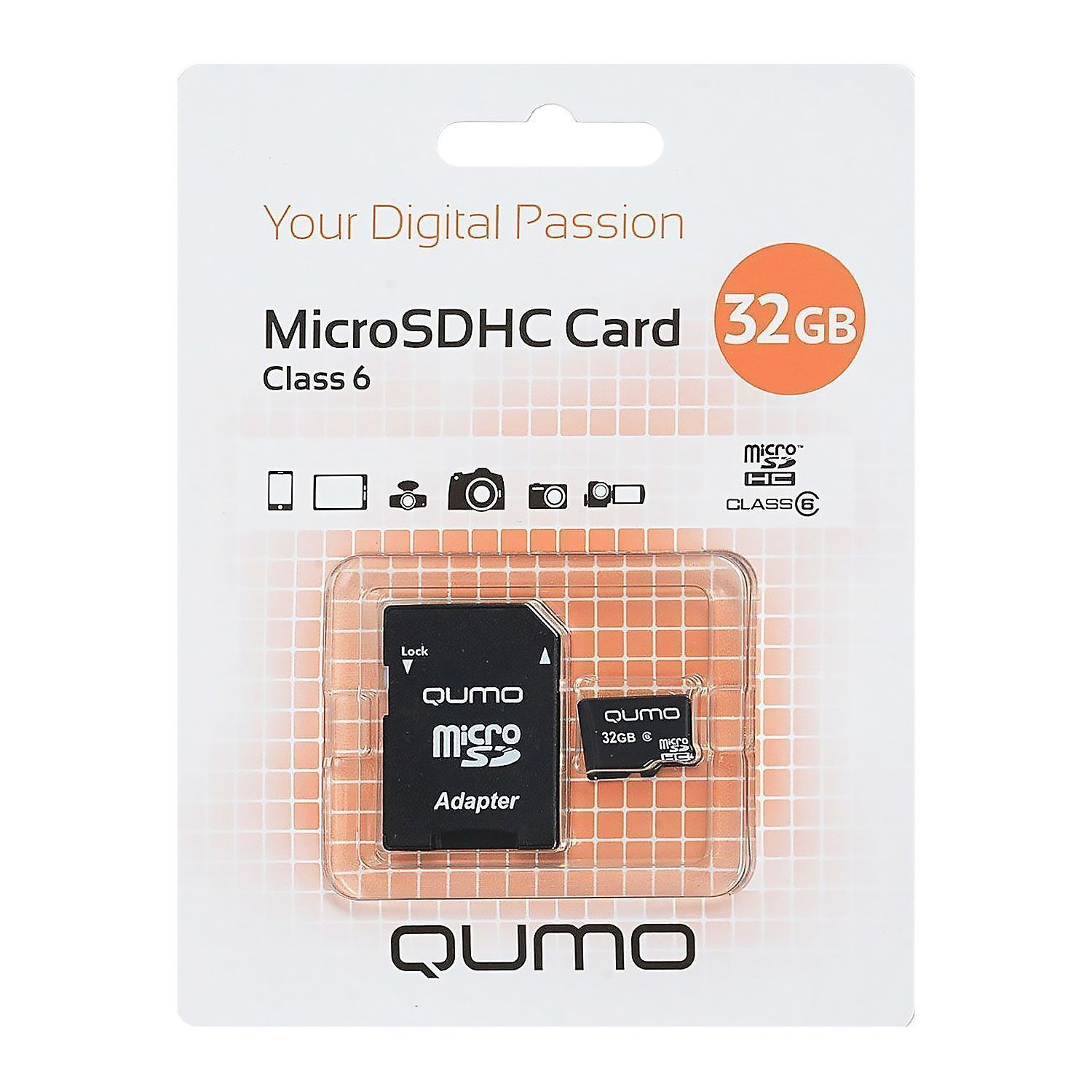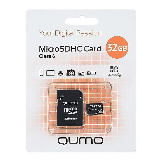 Карта флэш-памяти MicroSD 32 Гб Qumo +SD адаптер (class 6) ..