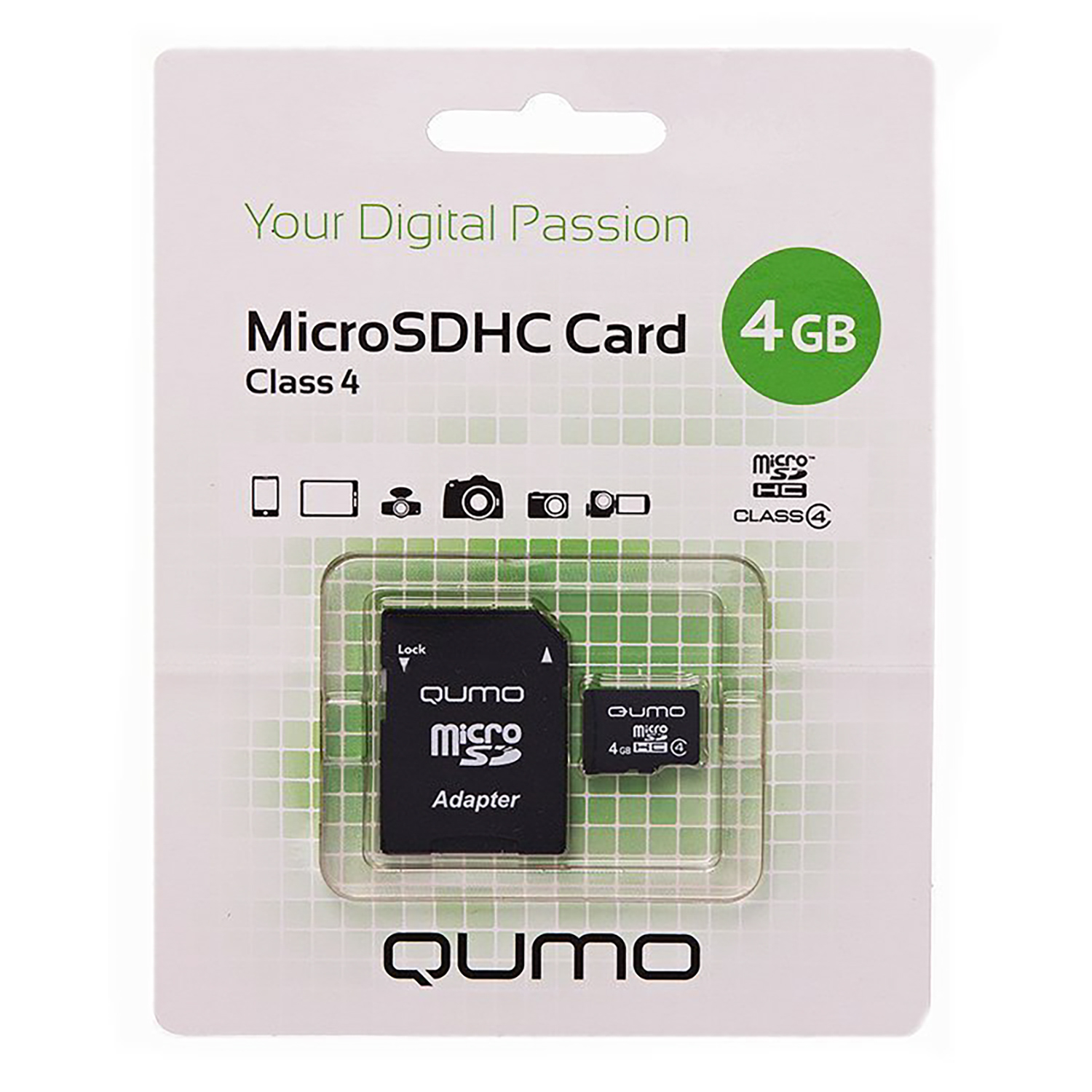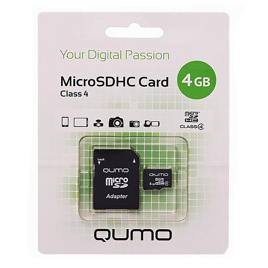 Карта флэш-памяти MicroSD 4 Гб Qumo +SD адаптер (class 4)