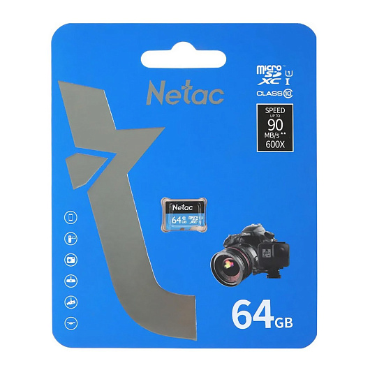 Карта флэш-памяти MicroSD 64 Гб Netac P500 Standard UHS-I (90 Mb/s) без адаптера (Class 1class 10)