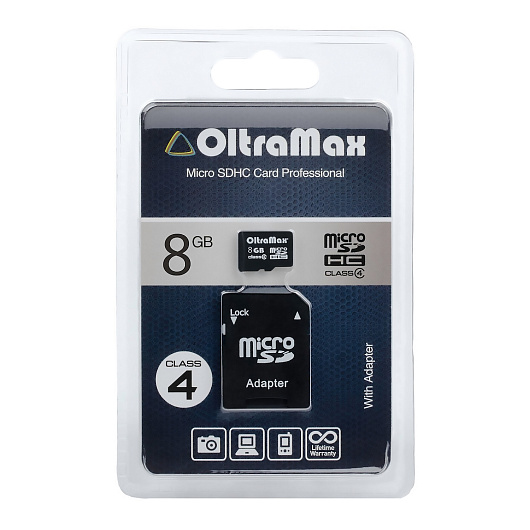 Карта флэш-памяти MicroSD 8 Гб OltraMax +SD адаптер (class 4)