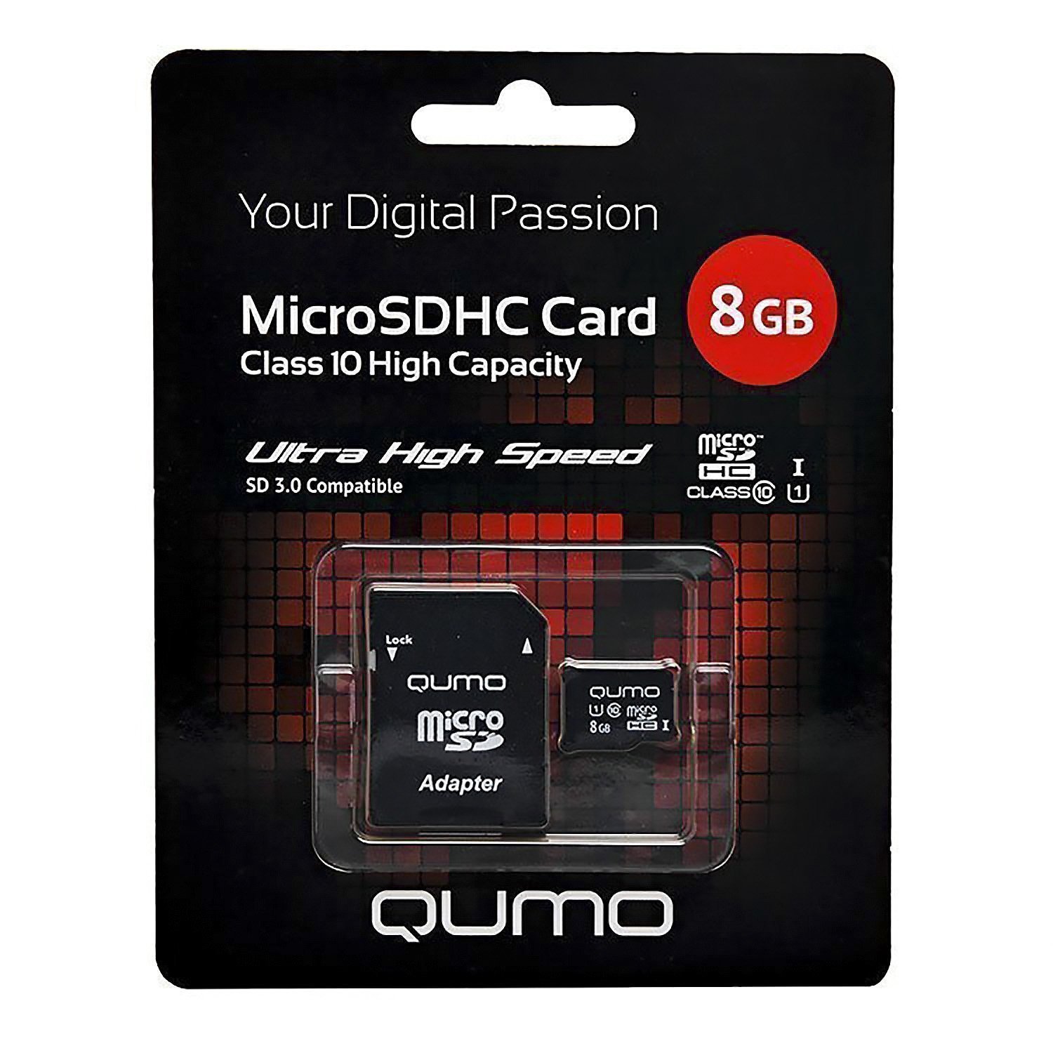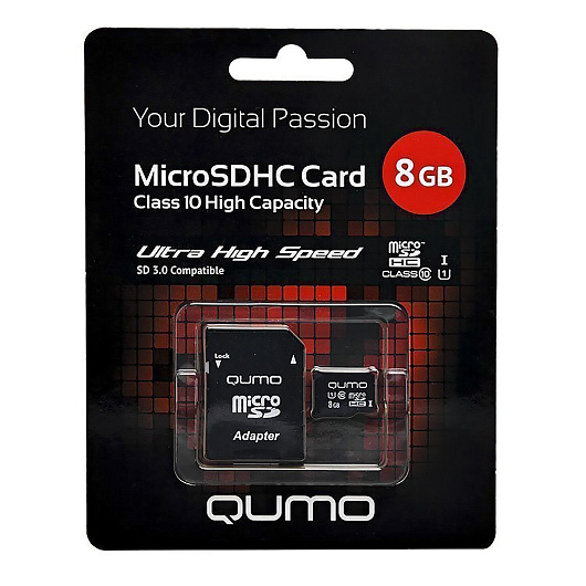 Карта флэш-памяти MicroSD 8 Гб Qumo +SD адаптер (class 10) UHS-1