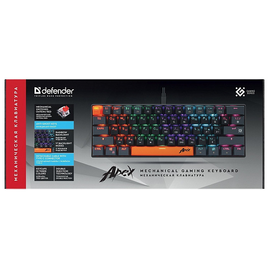 Клавиатура Defender Apex GK-002 игровая механическая (61кн, OUTEMU Red) (gray)