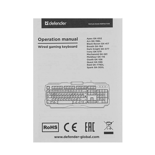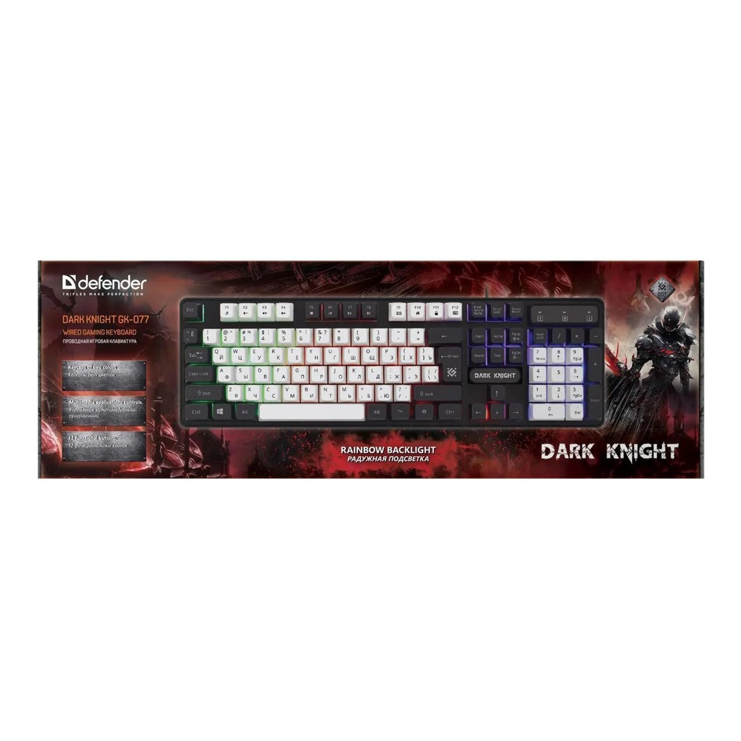 Клавиатура Defender Dark Knight GK-077 RU мембранная игровая с подсветкой (white/black)