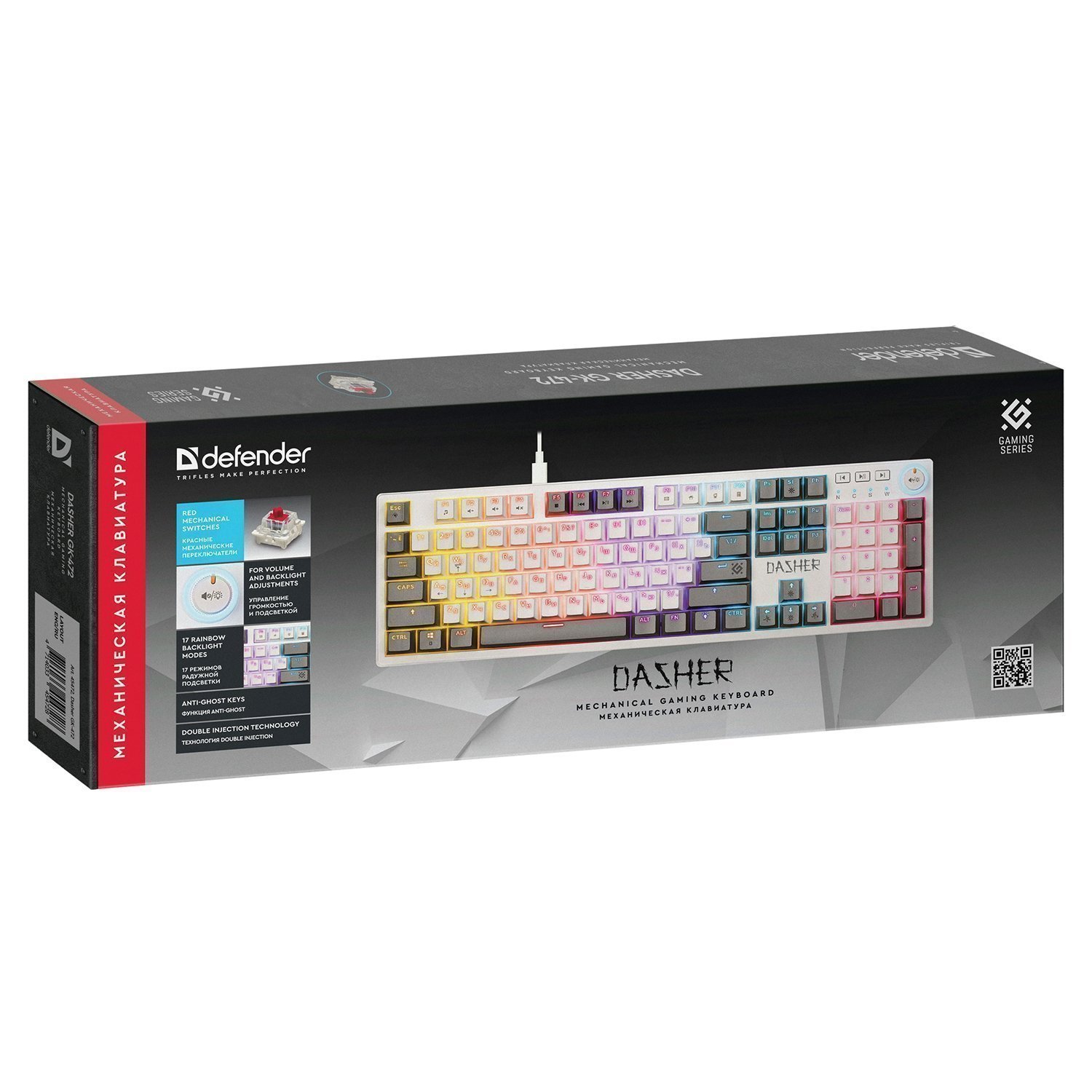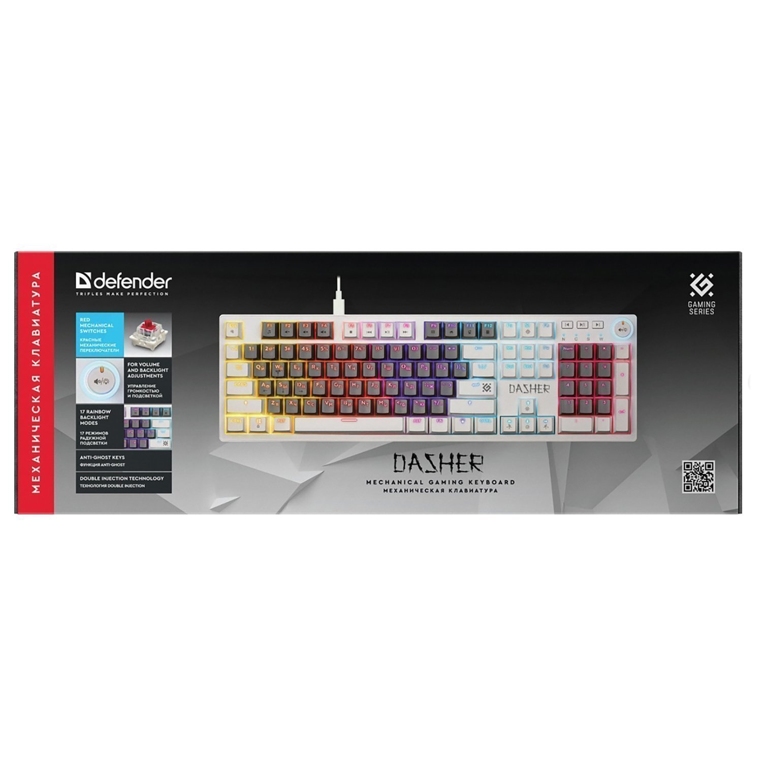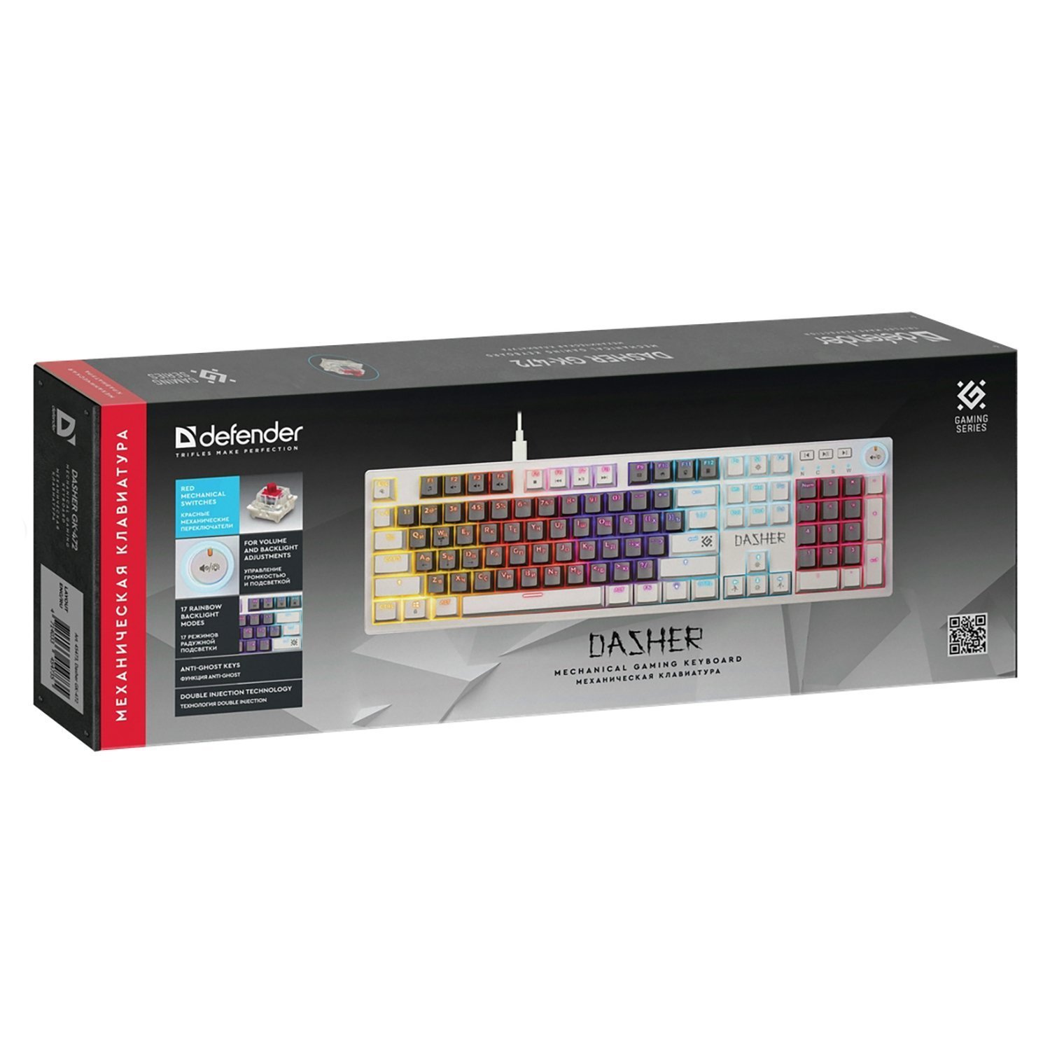 Клавиатура Defender Dasher GK-472 104кн, YH красн, 1.5м, (механическая) (gray/white)