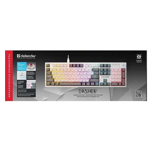Клавиатура Defender Dasher GK-472 104кн, YH красн, 1.5м, (механическая) (white/gray)