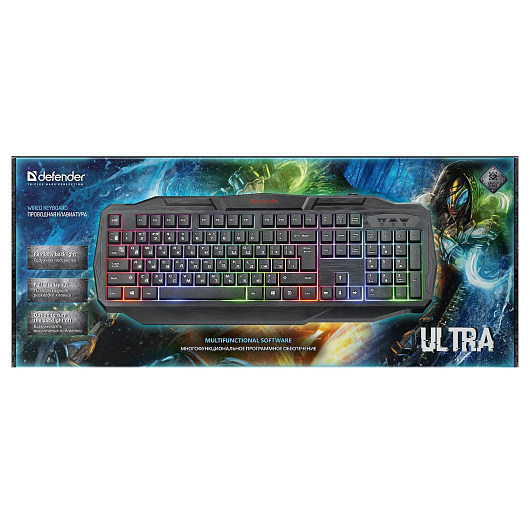 Клавиатура Defender HB-330L Ultra мембранная игровая с подсветкой USB (black)