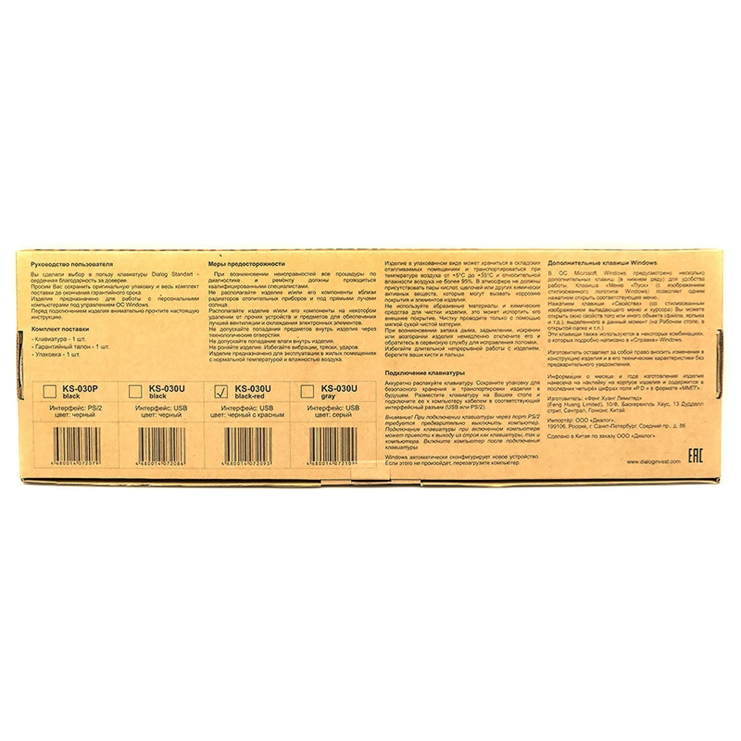 Клавиатура Dialog Standart KS-030U мембранная USB (black)