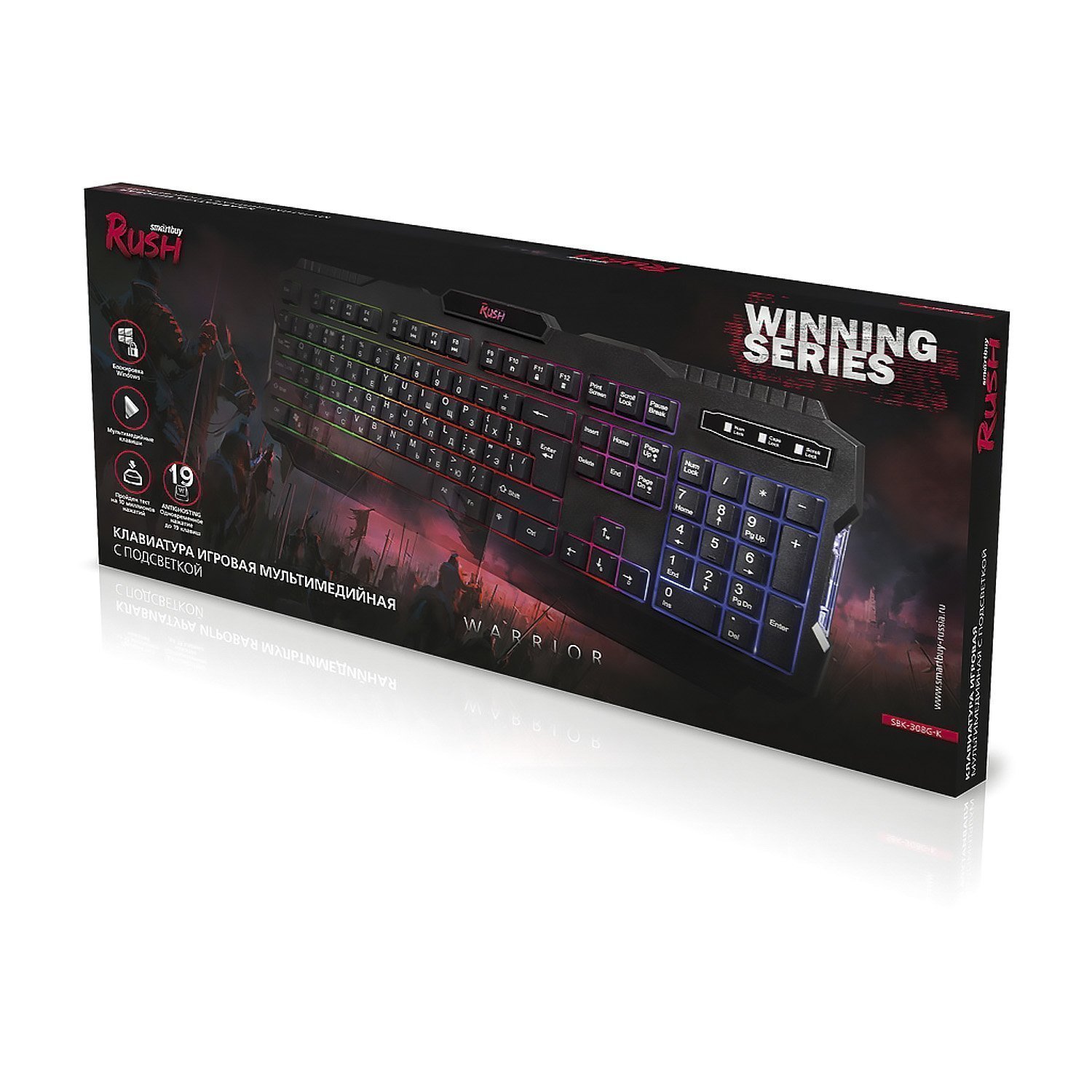 Клавиатура Smart Buy SBK-308G-K RUSH Warrior мембранная игровая с подсветкой USB (black)