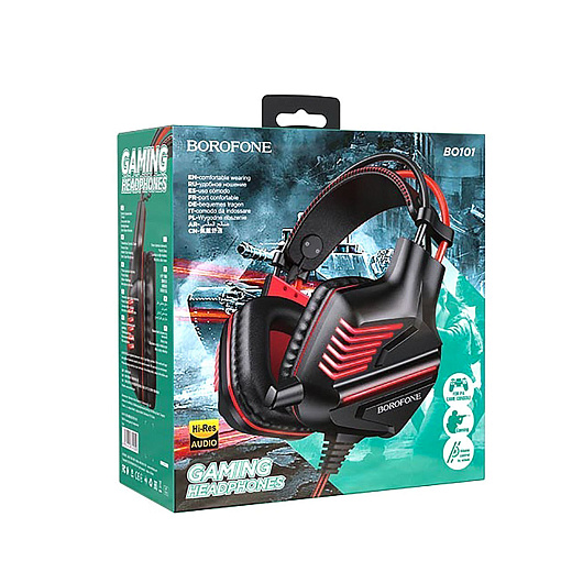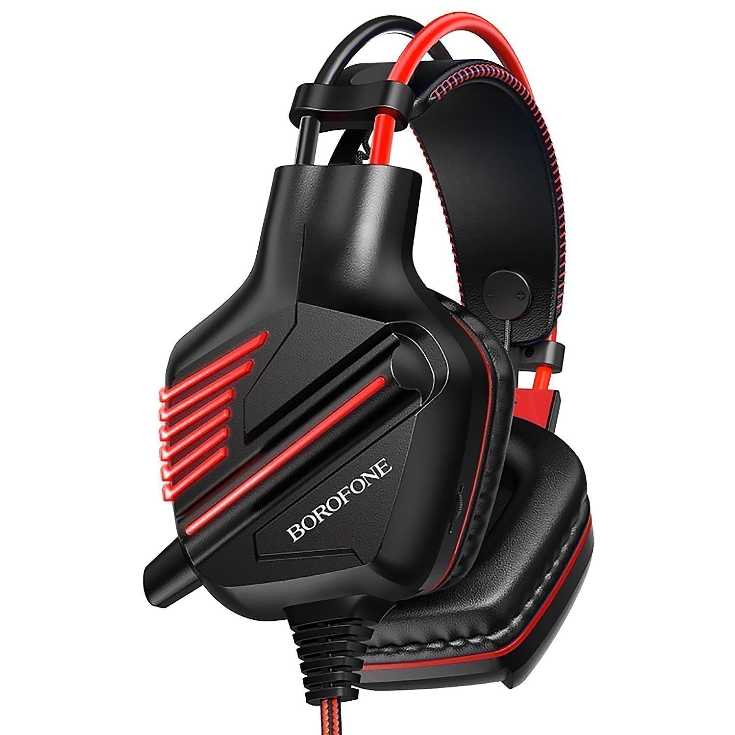 Компьютерная гарнитура Borofone BO101 Racing игровая с микрофоном, подсветкой USB-A+3,5 Jack (black/red)