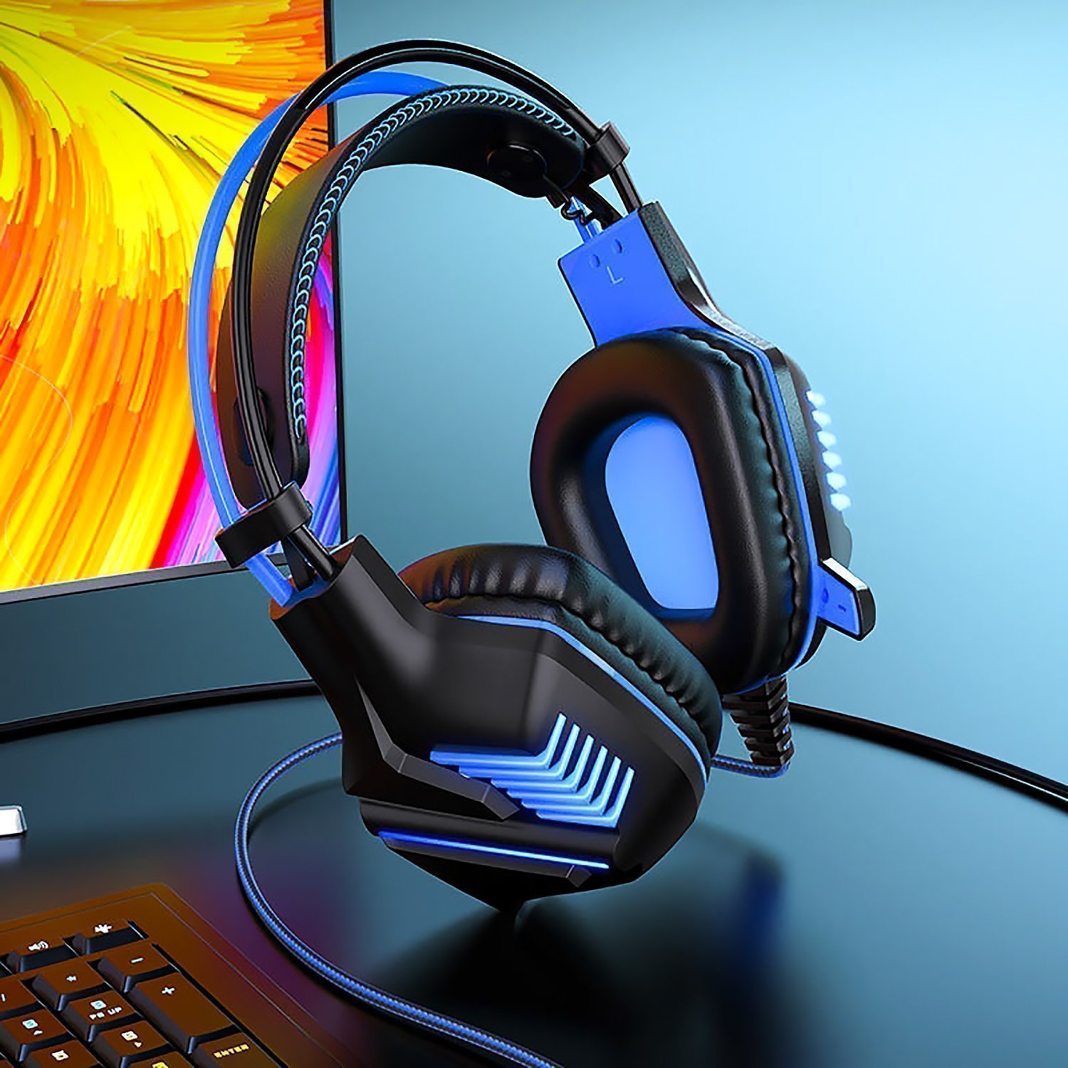 Компьютерная гарнитура Borofone BO101 Racing с микрофоном, игровая серия, USB-A + 3,5 Jack (blue)