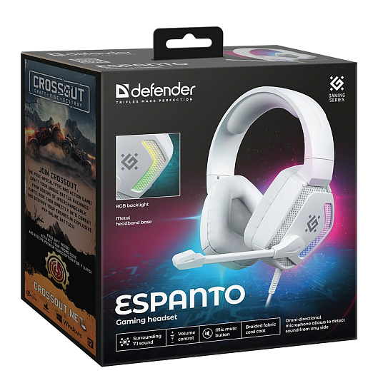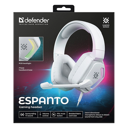 Компьютерная гарнитура Defender Espanto, 7.1, RGB, провод 2 м (white)