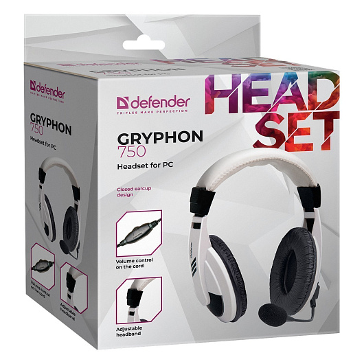 Компьютерная гарнитура Defender HN-750 Gryphon 2x3,5 mm jack (white)