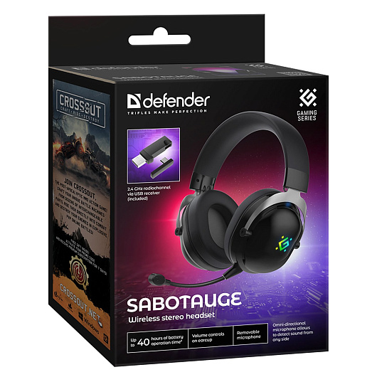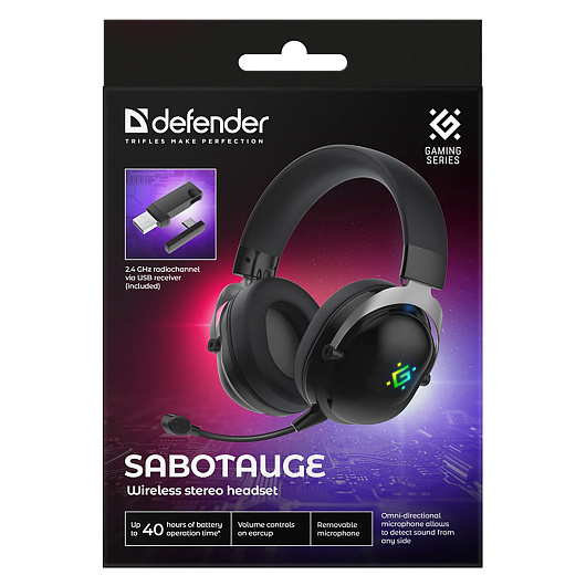 Компьютерная гарнитура Defender Sabotauge (Bluetooth, 2.4G, микрофон с шумоподавлением) (black)