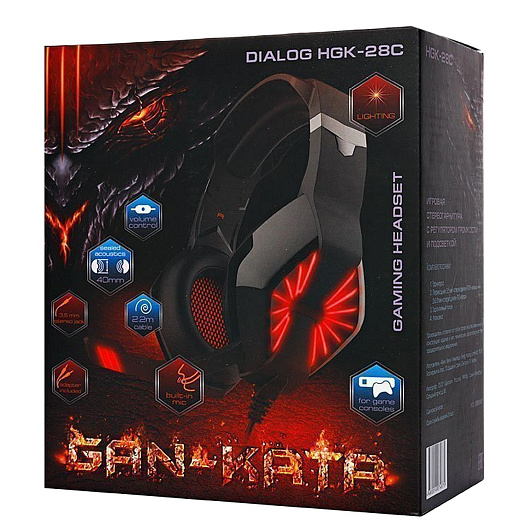 Компьютерная гарнитура Dialog HGK-28C Gan-Kata с подсветкой, игровая (black/red)
