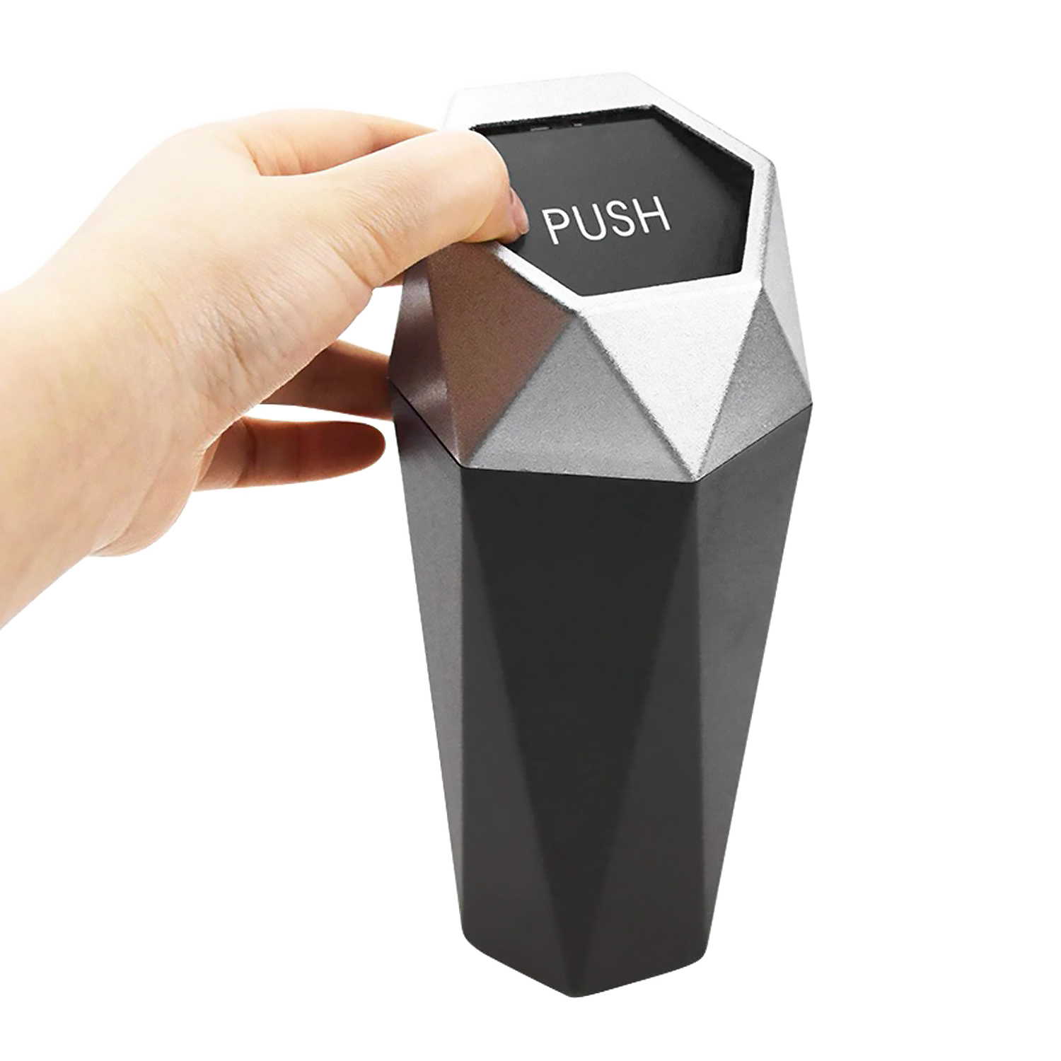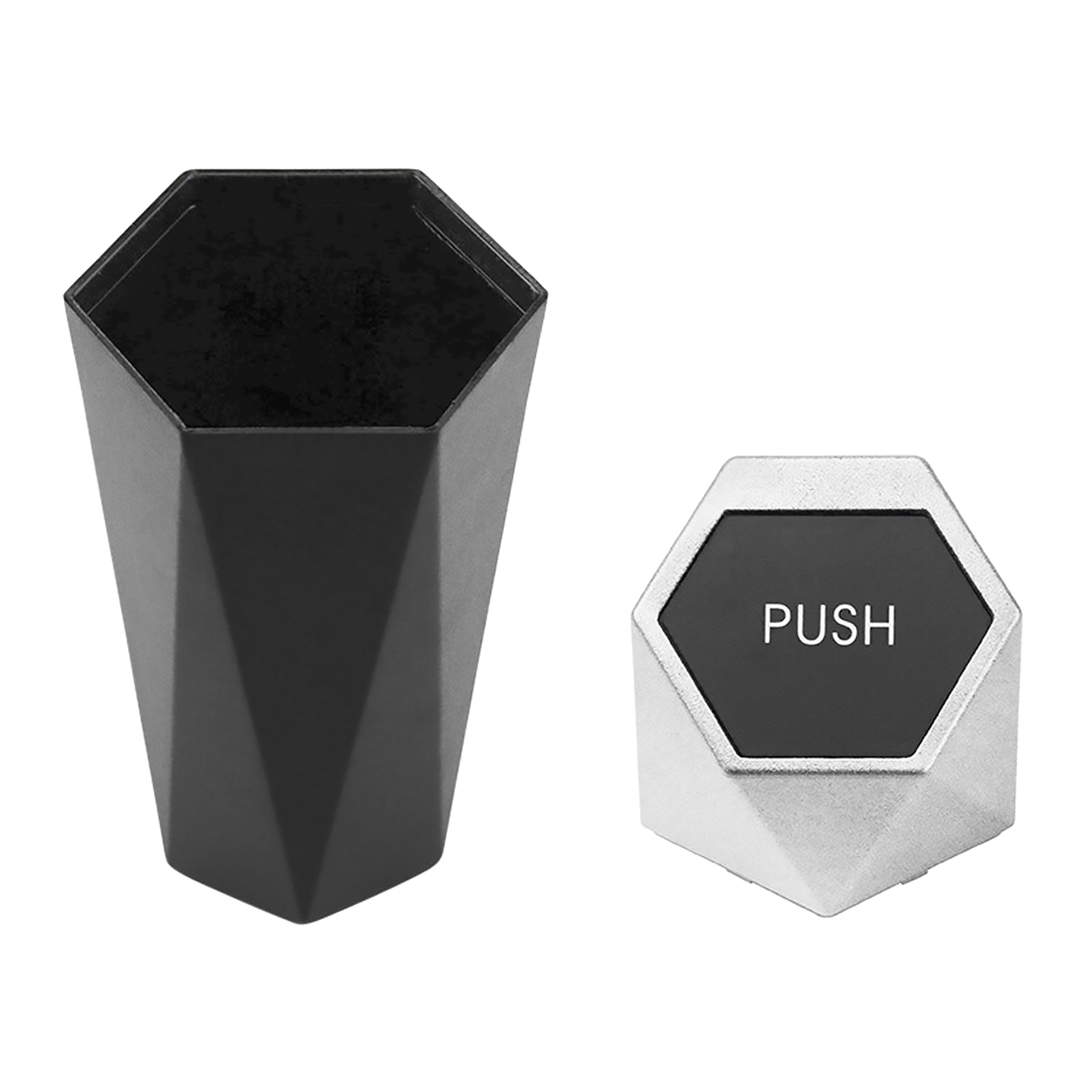 Контейнер - для мусора в авто "Push" в подстаканник (black/silver)
