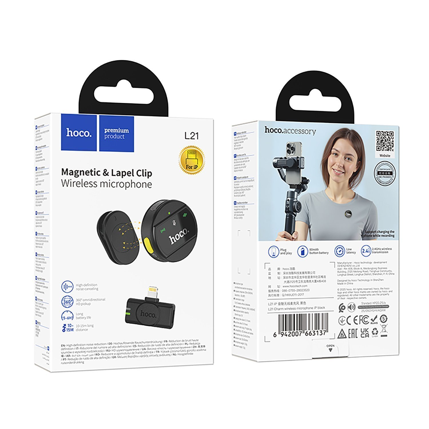 Микрофон Hoco петличный L21 Charm iP (black)