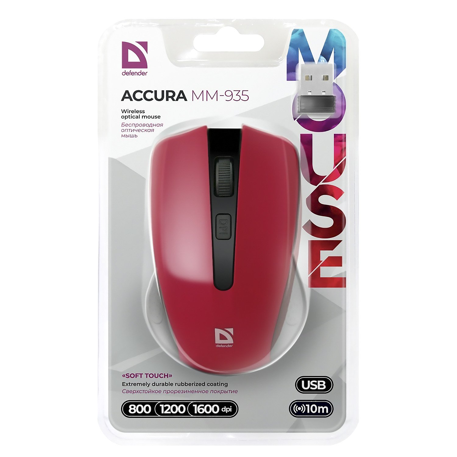 Мышь оптическая беспроводная Defender Accura MM-935 (red)