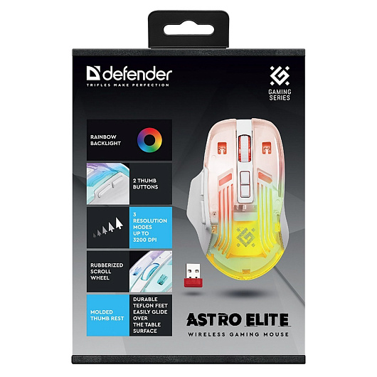 Мышь оптическая беспроводная Defender Astro Elite GM-056 3200dpi, 500мАч игровая (white)