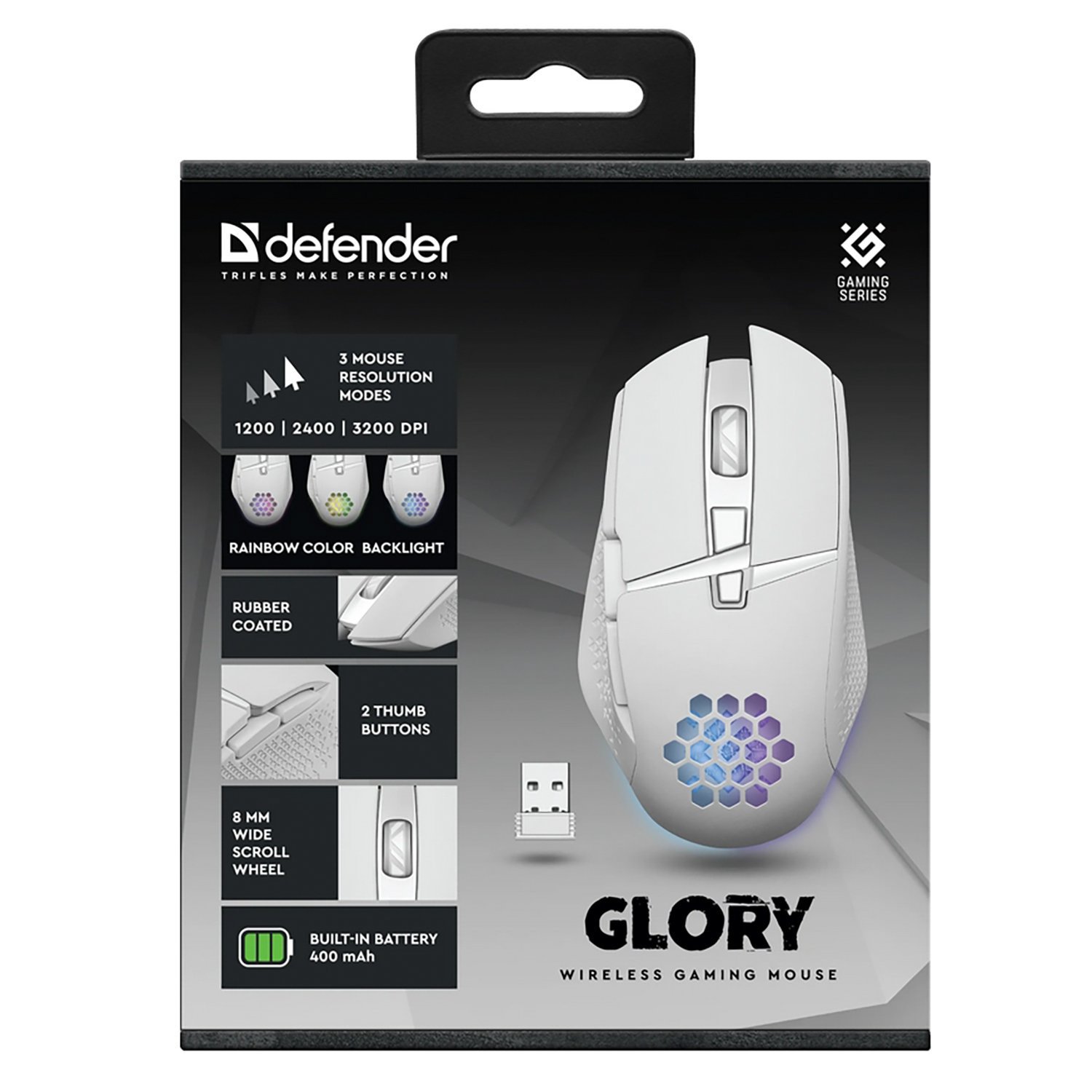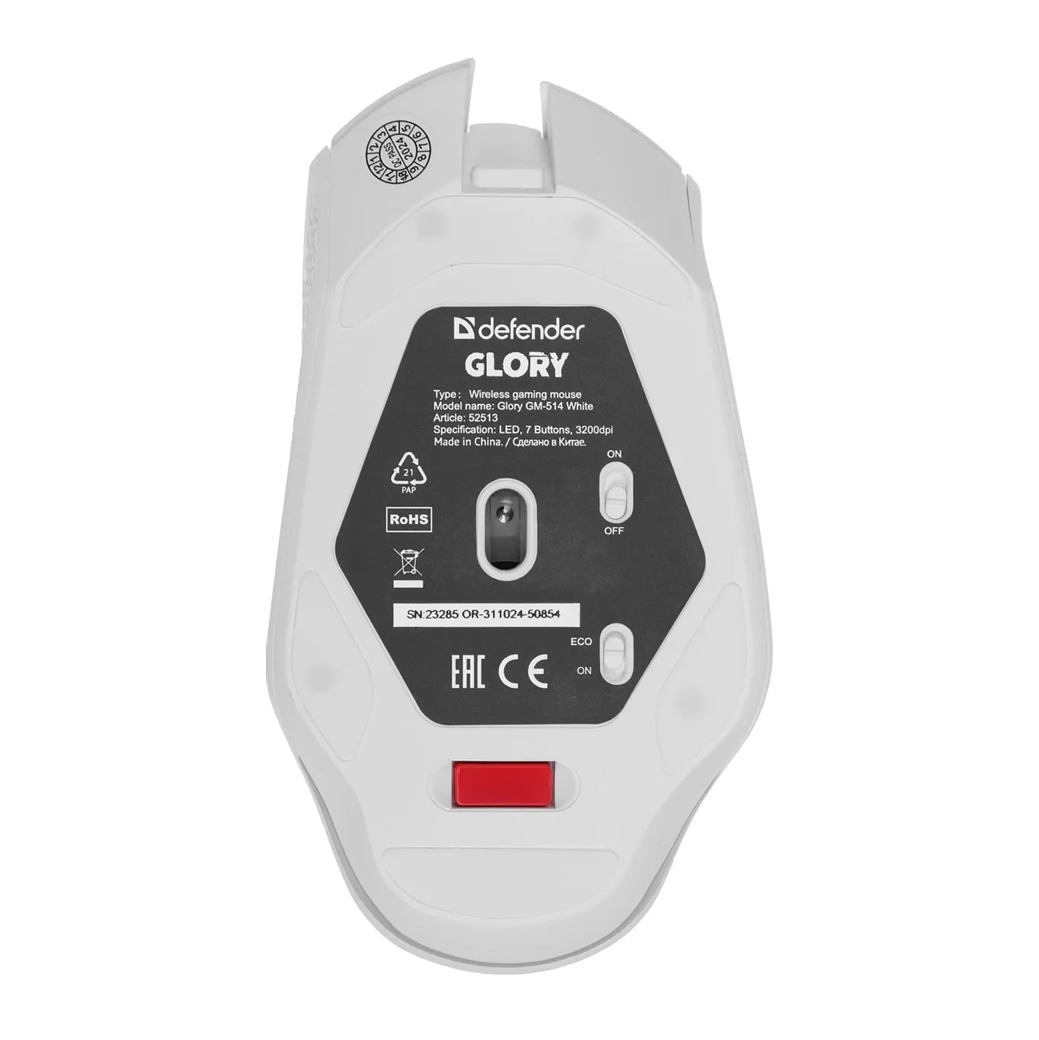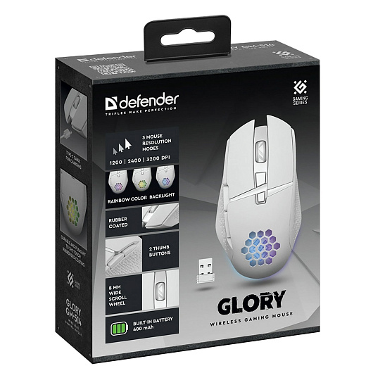 Мышь оптическая беспроводная Defender Glory GM-514 400 мАч,3200dpi, игровая (white) (237338)