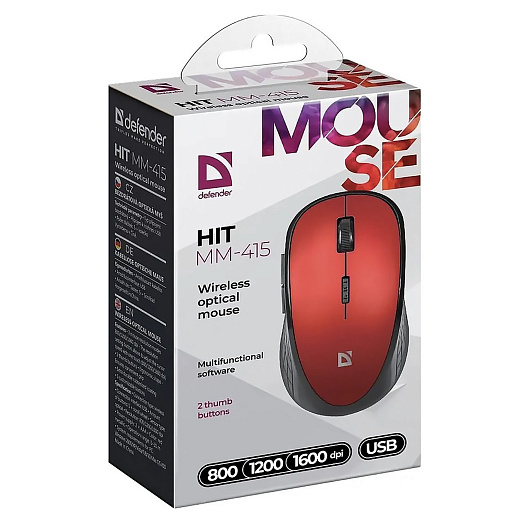 Мышь оптическая беспроводная Defender MM-415 Hit MM-415 (red/black)