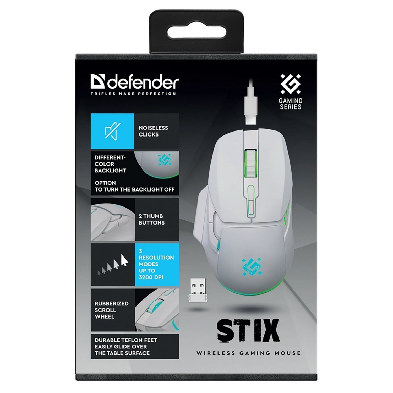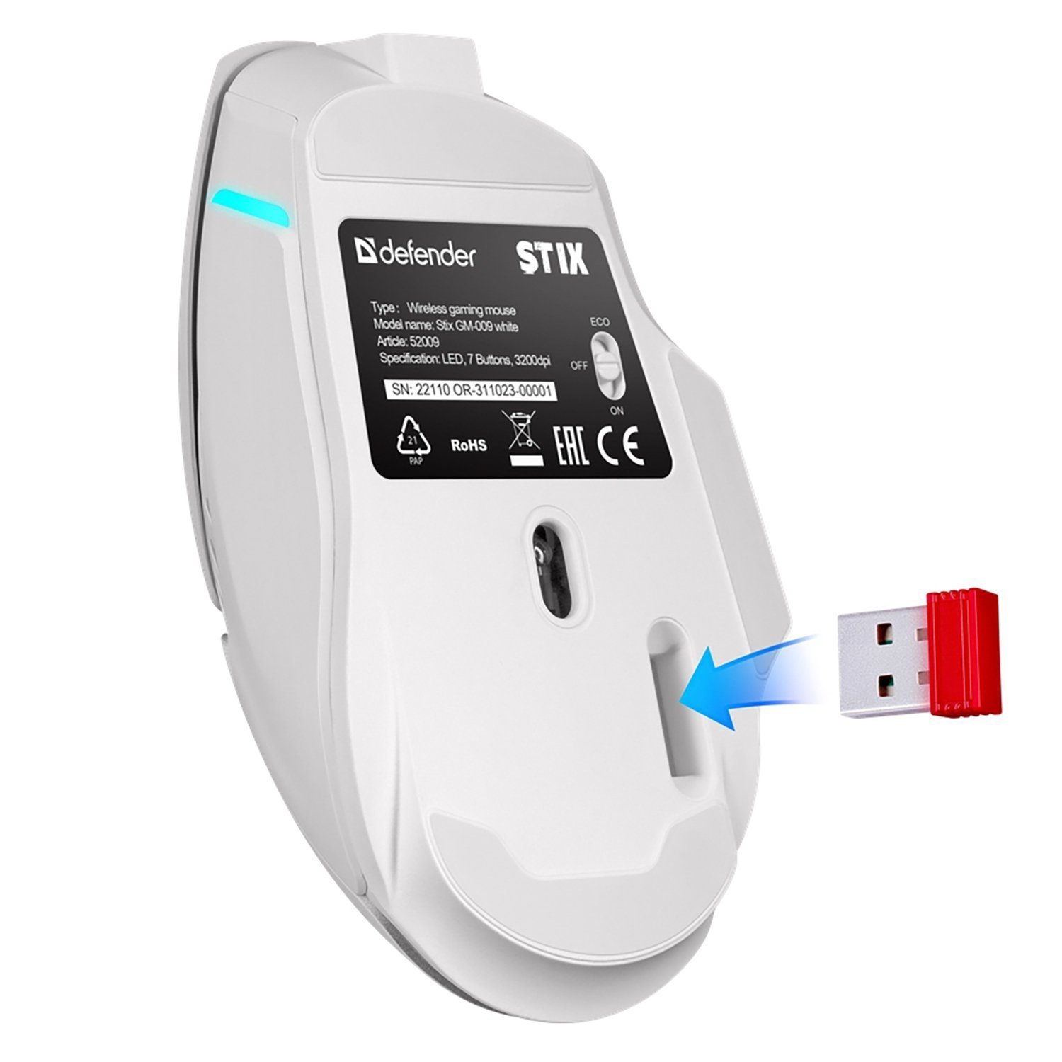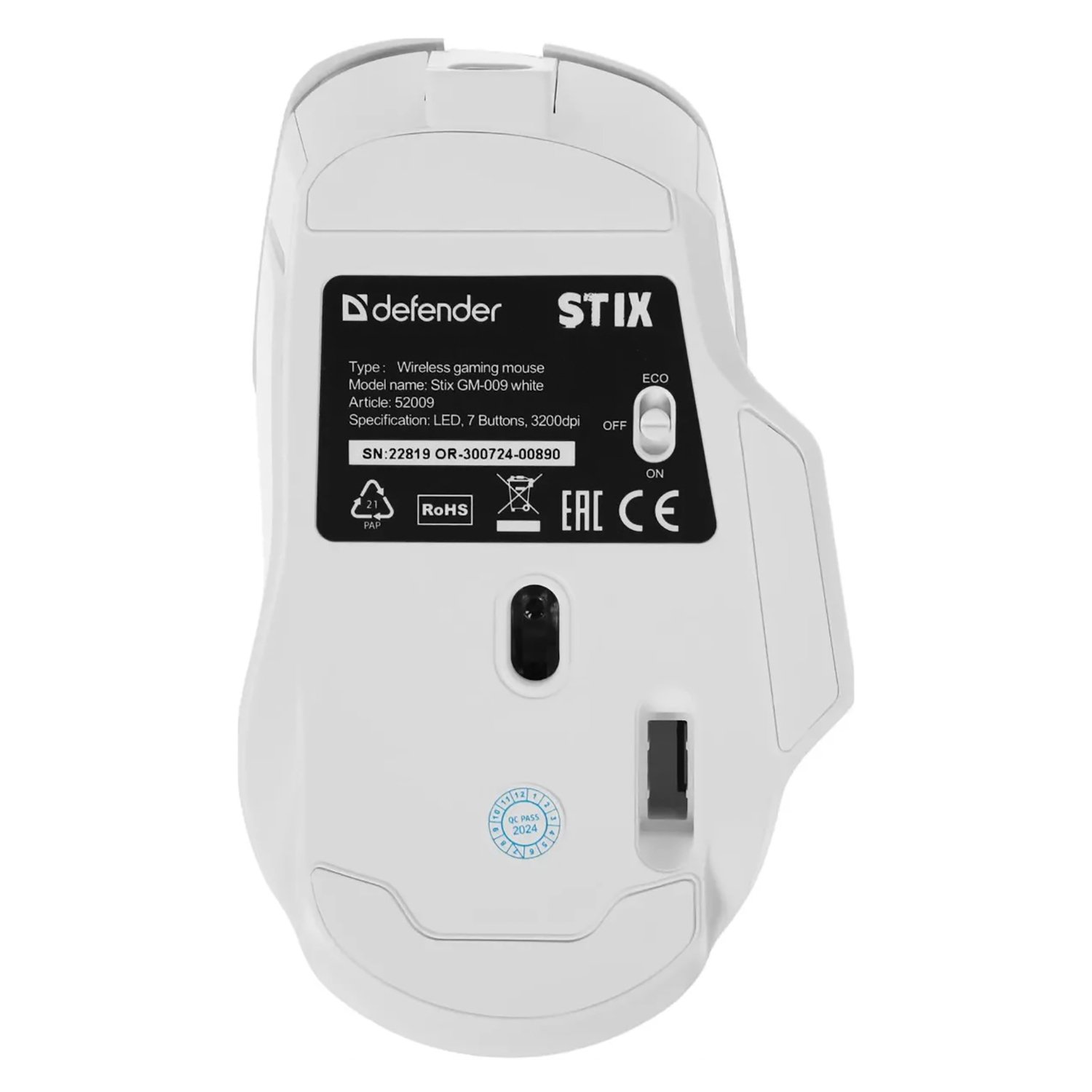 Мышь оптическая беспроводная Defender Stix GM-009 500мАч,3200dpi, игровая (white) (237341)