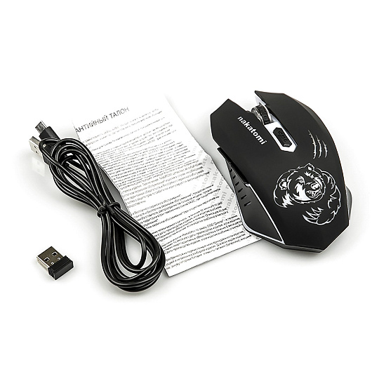 Мышь оптическая беспроводная Nakatomi Gaming mouse MROG-15UR RF, игровая (black/silver)