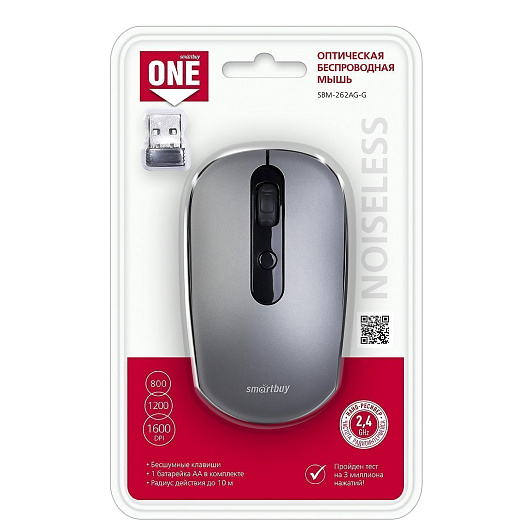 Мышь оптическая беспроводная Smart Buy SBM-262AG-G беззвучная (grey)