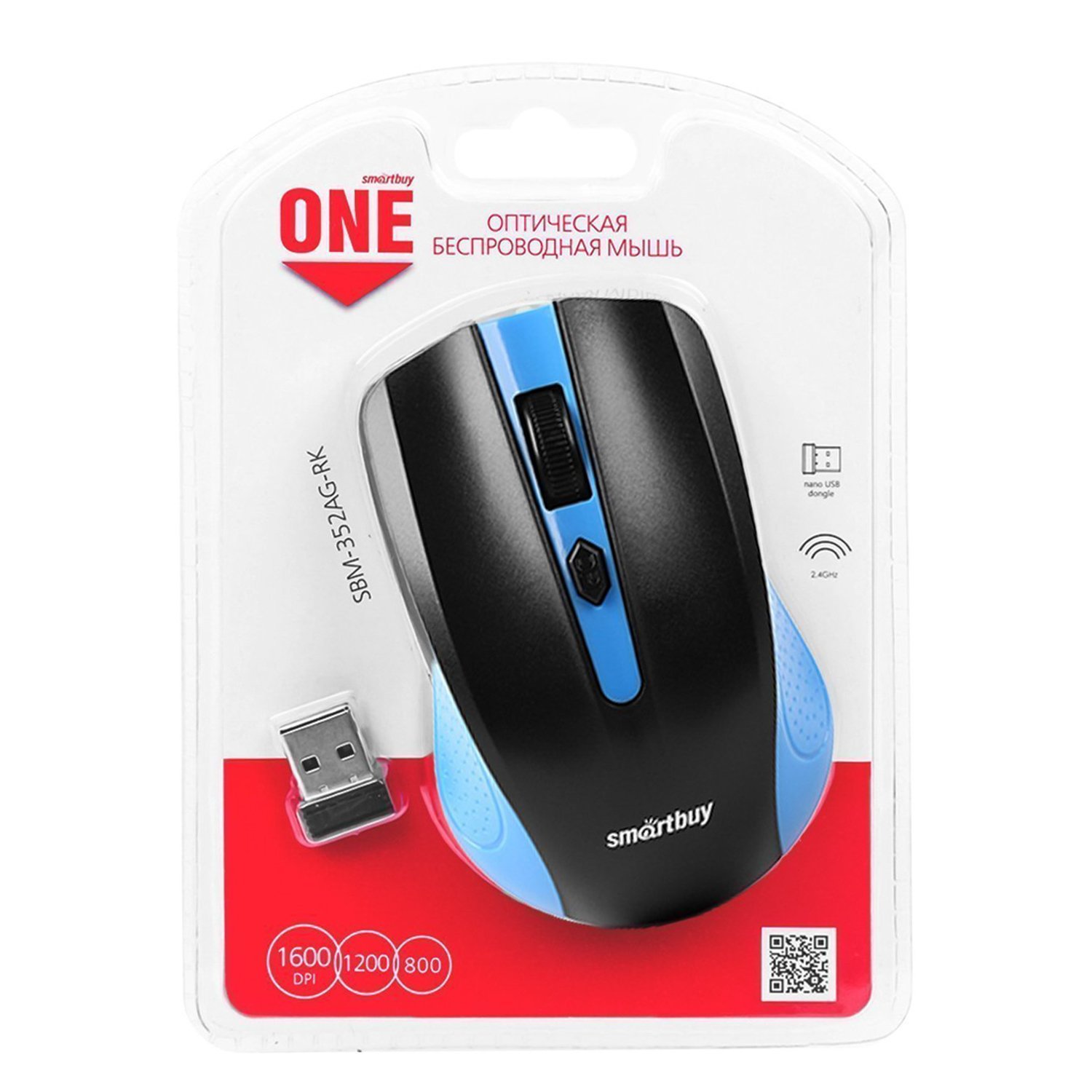 Мышь оптическая беспроводная Smart Buy SBM-352AG-BK ONE (blue/black)