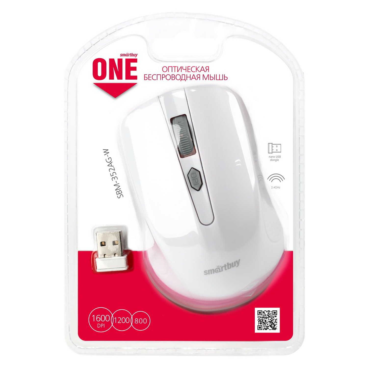 Мышь оптическая беспроводная Smart Buy SBM-352AG-W ONE (white)