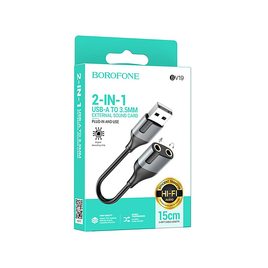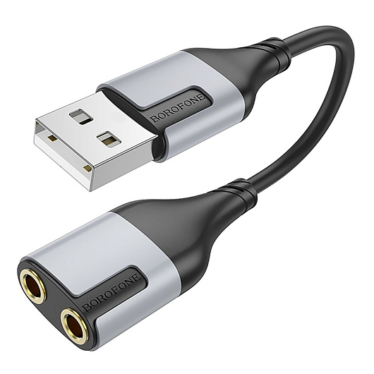 Переходник 2*Jack 3,5 (м) - USB (п) Borofone BV19 Creator 10см (black)