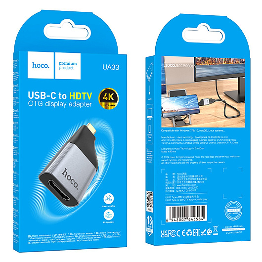 Переходник HDMI (м) - Type-C (п) Hoco UA33 (metal grey)