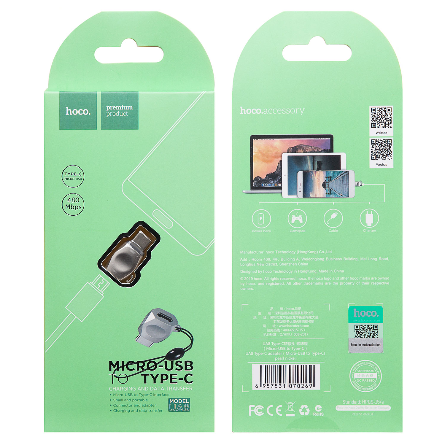 Переходник micro USB - Type-C Hoco UA8 Type-C adapter micro USB to type-c (pearl nickel)