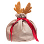 Подарочная упаковка - новогодний мешок с рожками New Year (13x15cm) (beige/red)