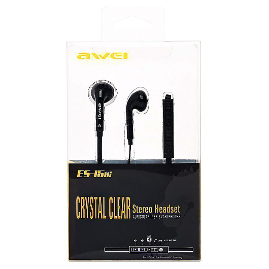 Проводные наушники с микрофоном вкладыши Awei ES-15Hi Jack 3,5 (black)
