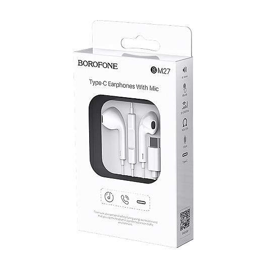 Проводные наушники с микрофоном вкладыши Borofone BM27 Amazing sound Type-C (white)