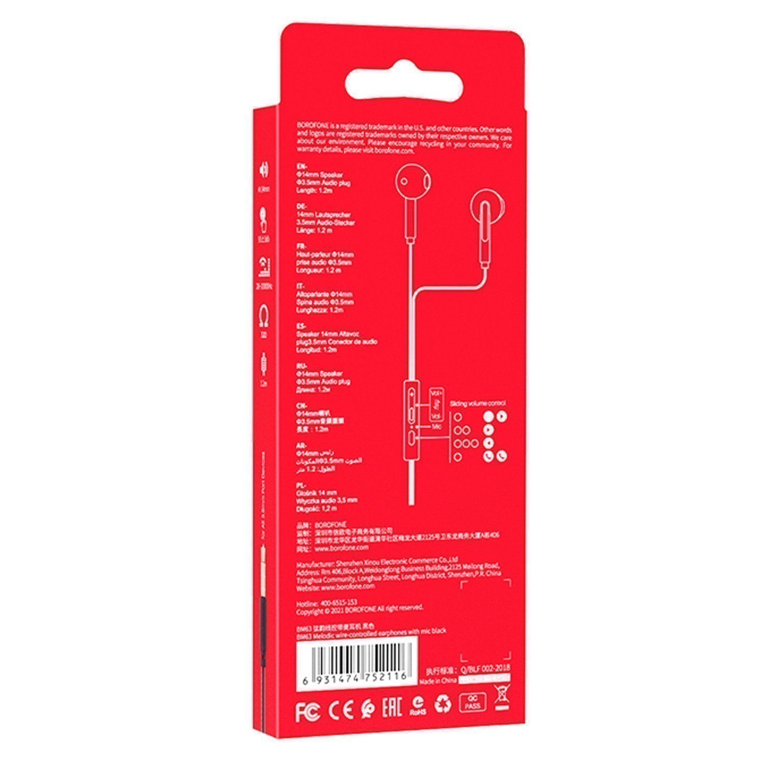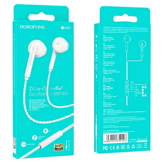 Проводные наушники с микрофоном вкладыши Borofone BM63 Jack 3,5 (white)