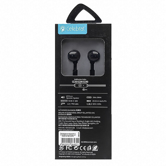Проводные наушники с микрофоном вкладыши Celebrat G6 Jack 3,5 (black)