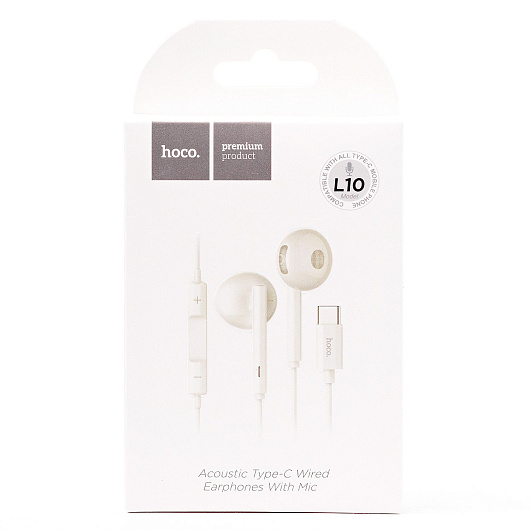 Проводные наушники с микрофоном вкладыши Hoco L10 Acoustic Type-C (white)