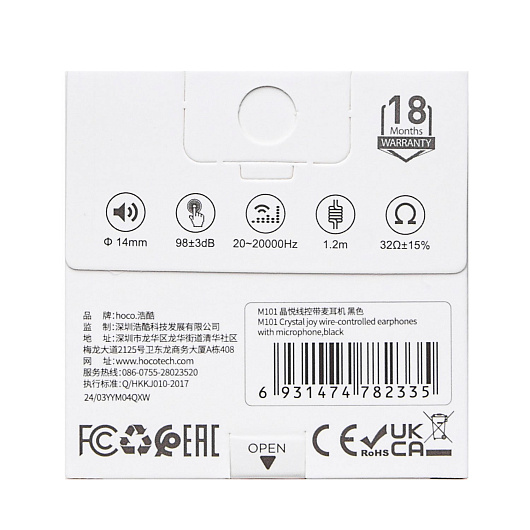 Проводные наушники с микрофоном вкладыши Hoco M101 Crystal joy Jack 3,5 (white)
