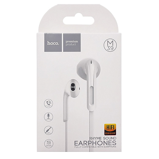 Проводные наушники с микрофоном вкладыши Hoco M39 Rhyme sound Jack 3,5 (white)