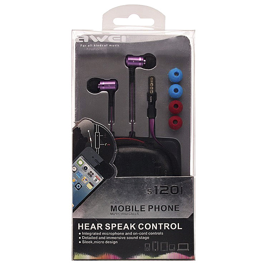Проводные наушники с микрофоном внутриканальные Awei s120i Jack 3,5 (purple)